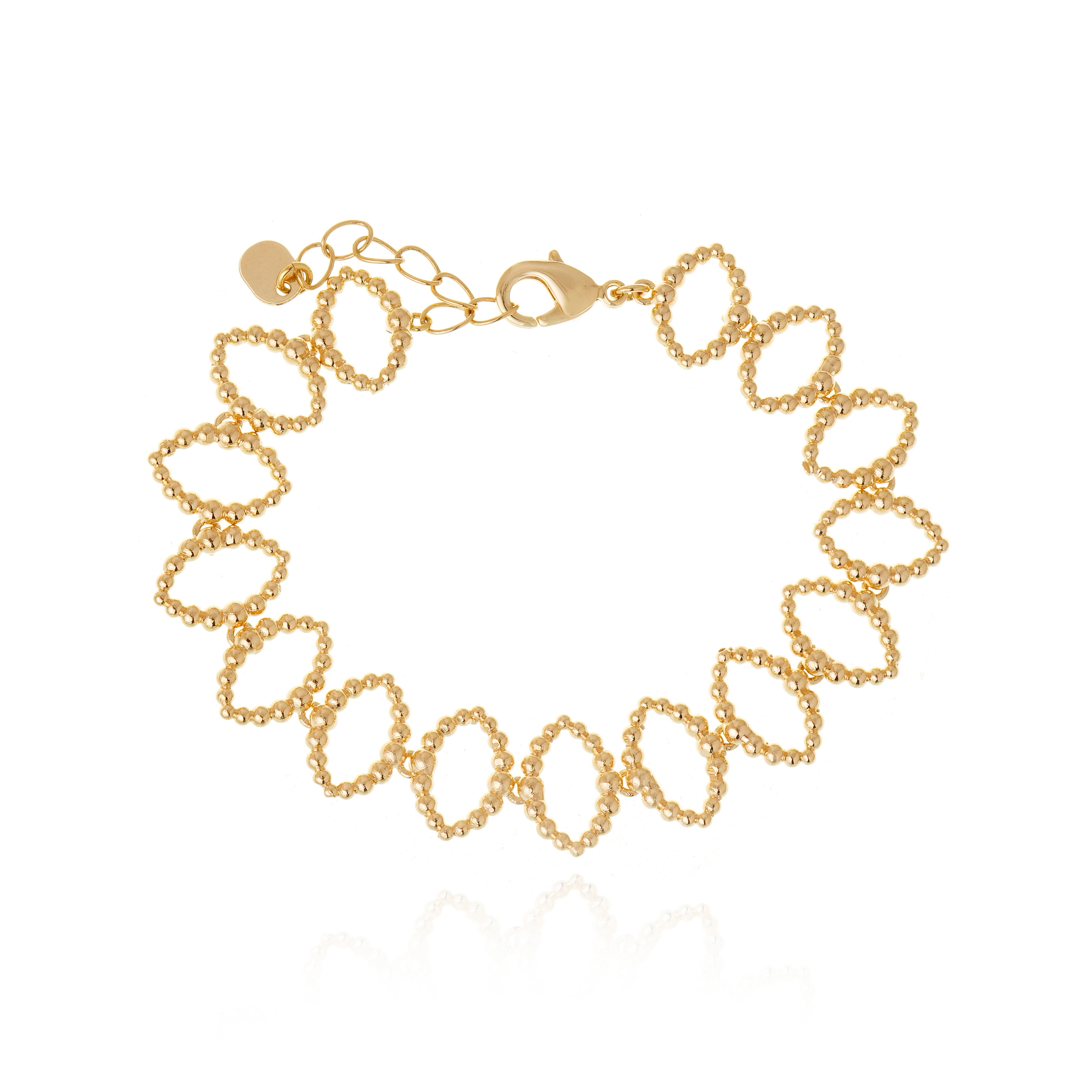 Pulseira Folhas de Amora produzido artesanalmente com técnicas de joalheria, banho em ouro 18k e acabamento delicado. Possui corrente com elos orgânicos e ajuste com extensor.