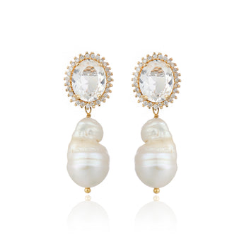 Com cristais sutis e pérolas biwa únicas, este brinco traz um desenho refinado que valoriza a imperfeição natural e o brilho.