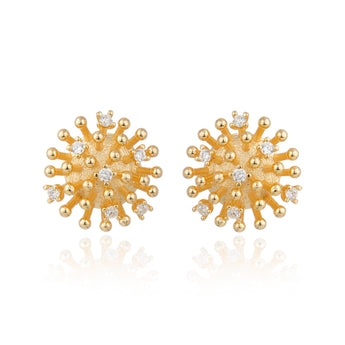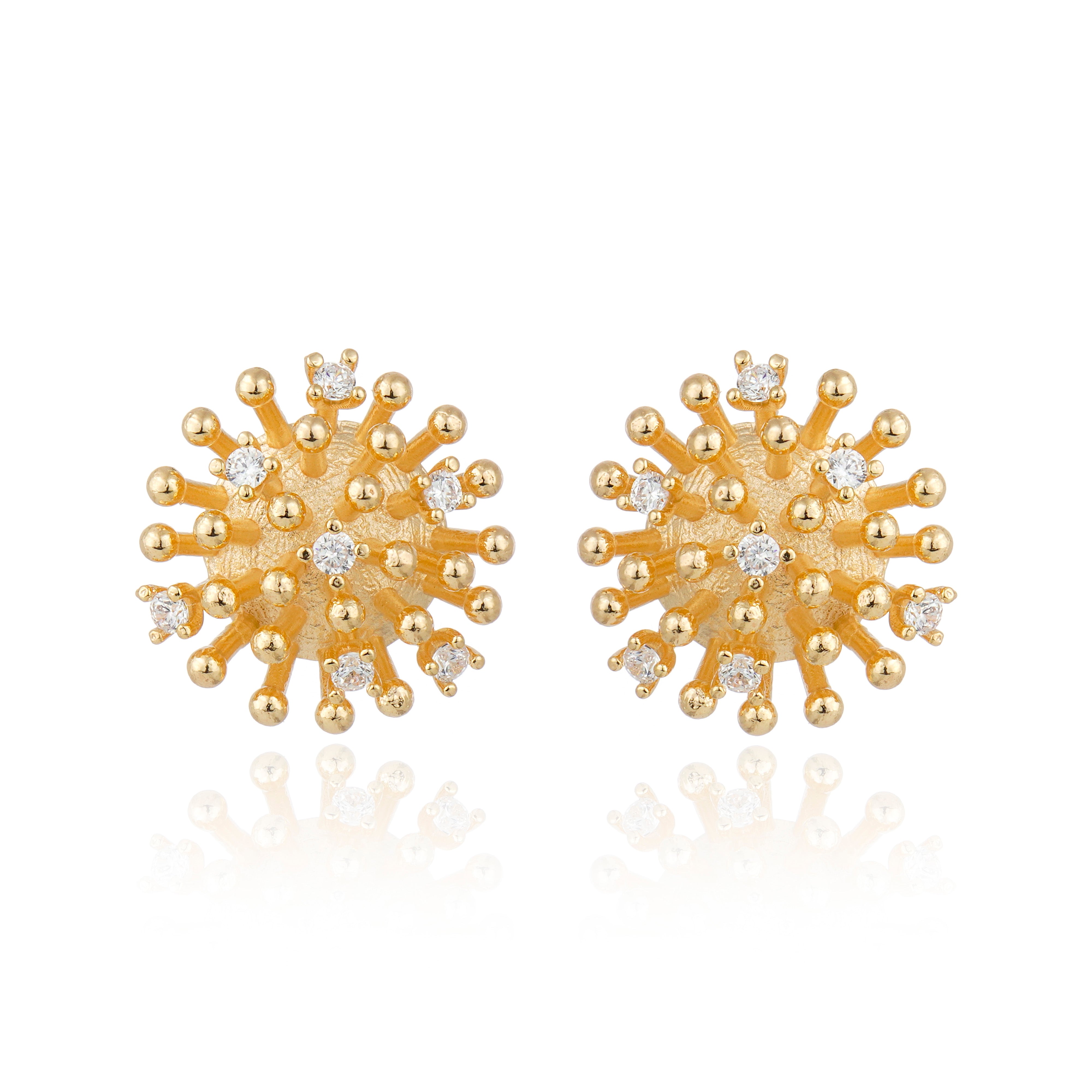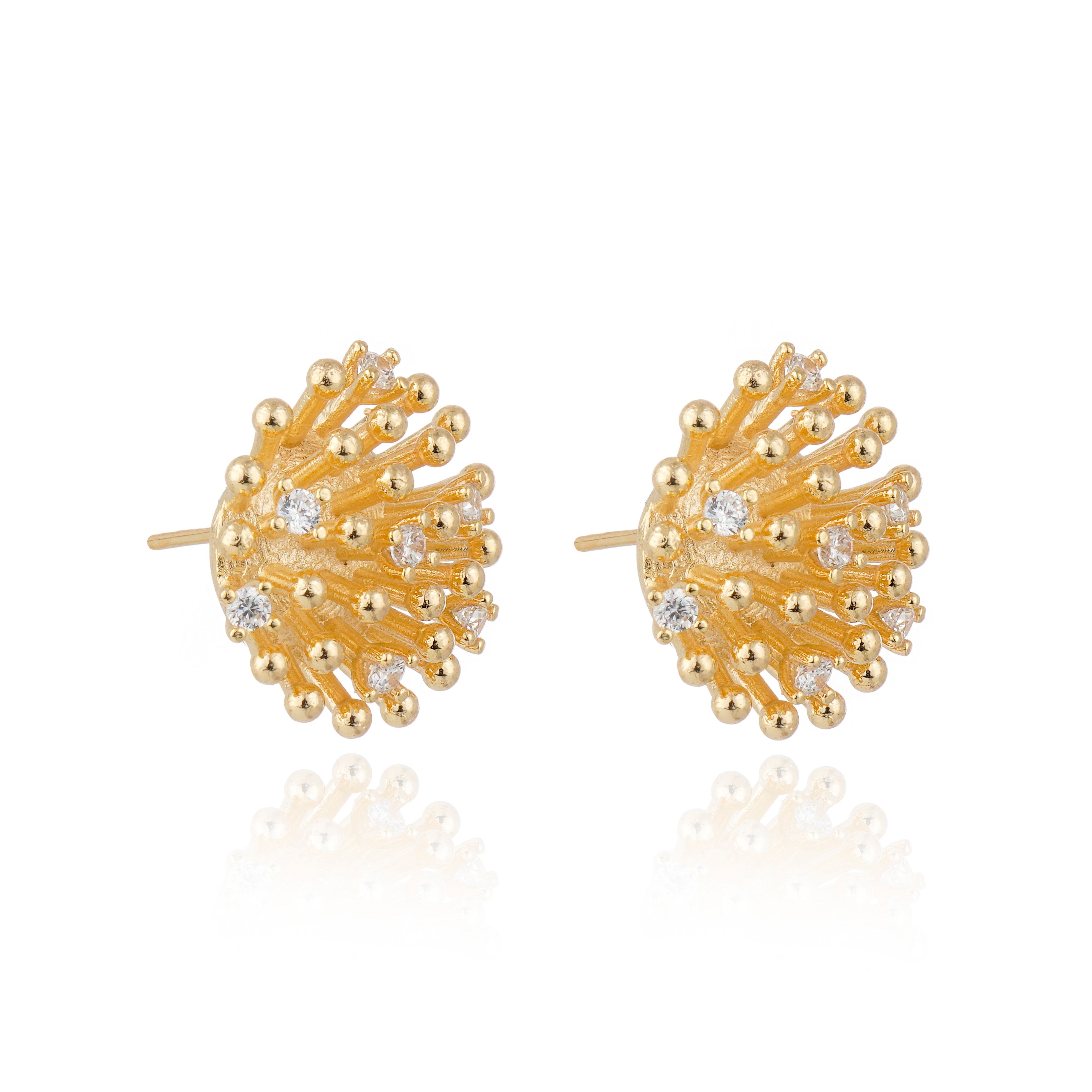 O Brinco Pontos de Luz foi produzido artesanalmente, aplicando as técnicas da joalheria, no banho ouro, com zircônias cravejadas manualmente. Medida: 19mm