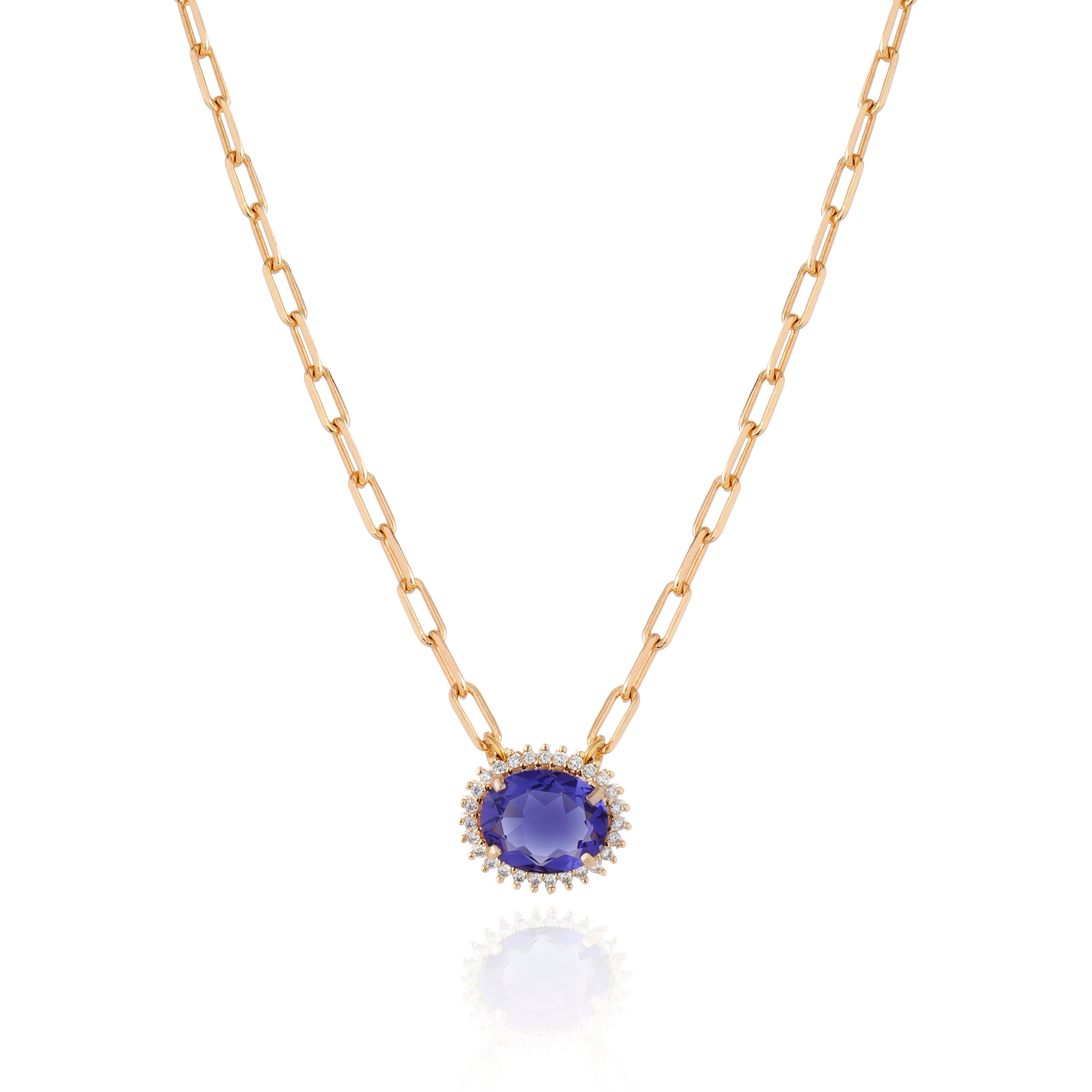Colar Corrente Cartier com Pingente Cristal - Azul